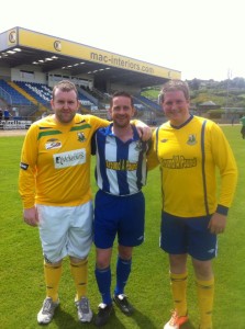 The best goal seen at the Showgrounds this year came in Saturday’s end of season challenge match between the staff and supporter’s team. With the supporters team leading 2-1 with five minutes left Mo Ruddy, who’s last appearance in a Newry shirt saw him score on Sky Sports Soccer AM, beat Ray Byrnes offside trap to run onto a perfect pass from Chris McAllister and from 30 yards chip a beautifully flighted shot over goalkeeper Marty McParland to give the underdogs what should have been an unassailable 3-1 lead.